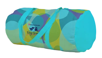 Be a jet-setter who sets all the trends with this amazing barrel body duffel bag. Roomy enough to fit all your essentials, this full-color Darling Duffel will help you scurry from here to there in style. Includes pigment-dyed canvas, as well as durable webbing handles and zippers in your choice of color. Measures 22” W x 11” H x 11” D.